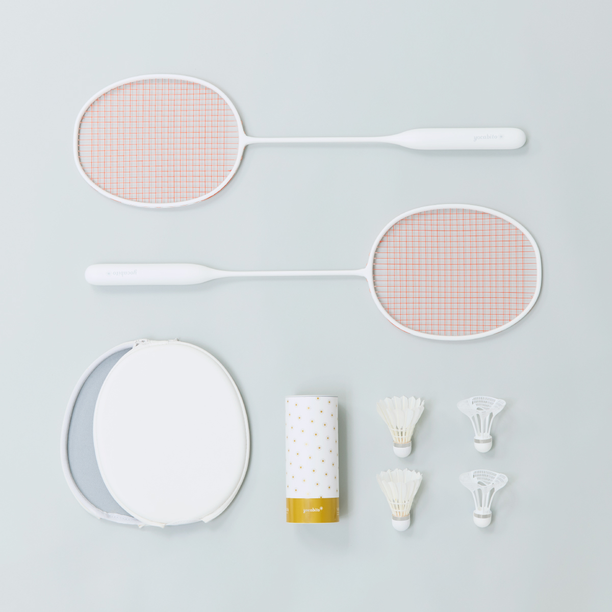 ラケット2本、シャトル2種(ナイロンシャトル・羽シャトル)、専用シャトルケース、そして持ち運びに便利な収納ケースをセットにしました。